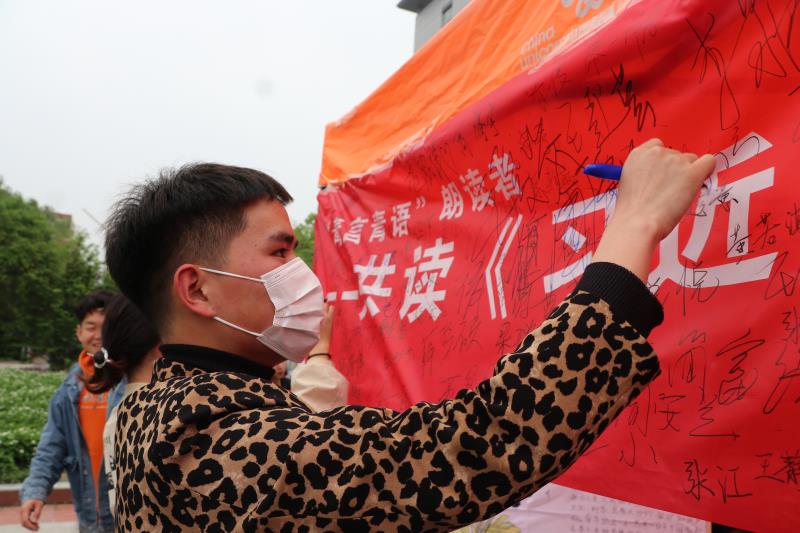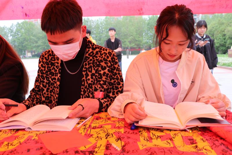 为深入贯彻“学党史、强信念、跟党走”学习教育活动部署要求,营造浓厚的“书籍共享,书香校园”的学习氛围,增强新时代青年的使命与担当,2021年4月23日,河南科技职业大学组织全校团员青年开展“青言青语”朗读者读书分享签名活动。