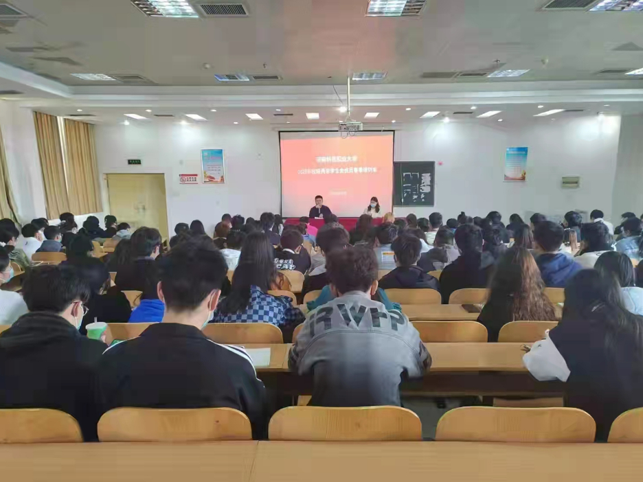为深入贯彻习近平新时代中国特色社会主义思想,学习《关于学联学生会工作人员改进作风服务同学的若干规定》,进一步提高学生会成员的素质能力,加强学生会成员的工作效率。3月29日,河南科技职业大学学生会于综合楼东北二阶梯教室召开2022年校院两级学生会成员春季培训会。校团委副书记孔建富、校团委黄梦凡,校学生会全体成员、各学院主席团及各部负责人参加本次培训会。