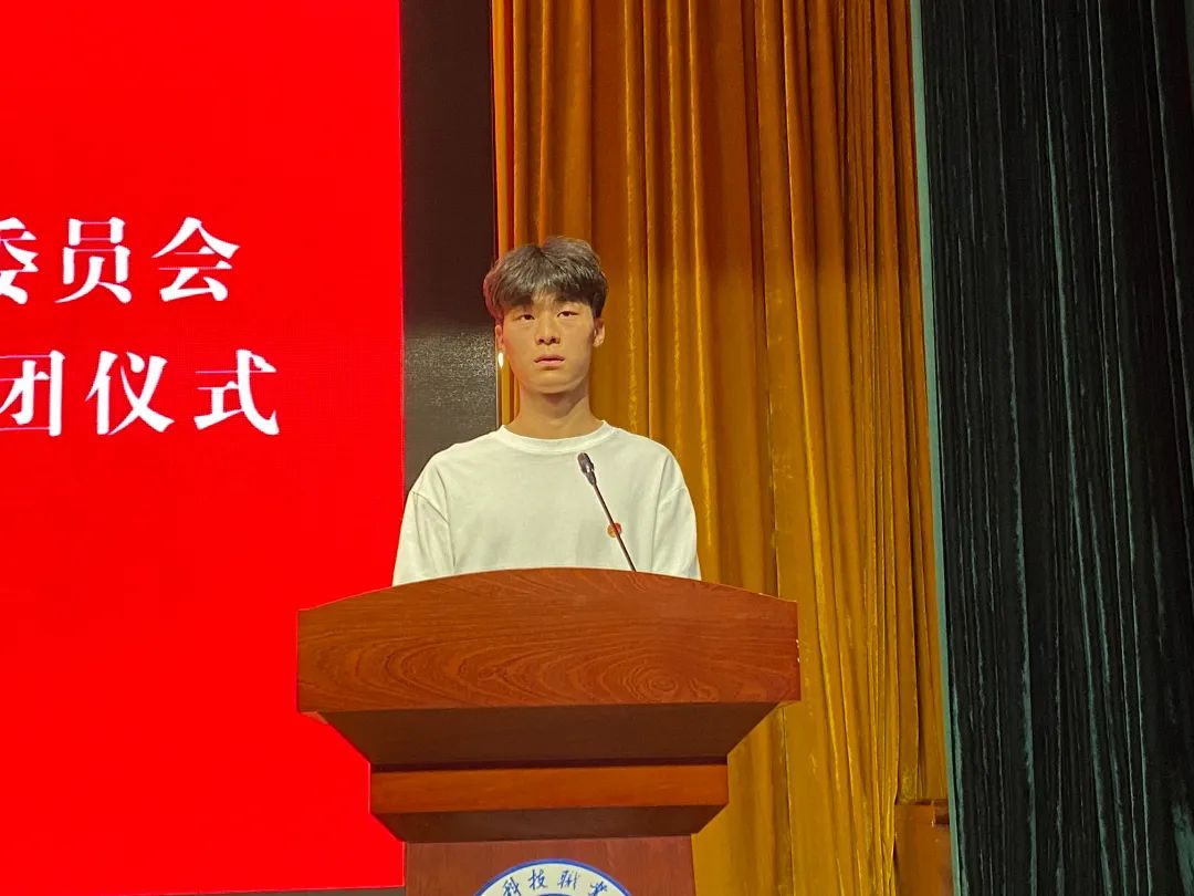 新团员代表巫林坤发言,他表示,作为新发展团员,要不断学习团的先进思想,积极向团组织靠拢,积极发挥共青团员在学生群众中的带头作用,自觉履行团员的义务,执行团的决议,遵守团的纪律,完成团组织交给的任务,积极参加团组织活动,不断用实际行动实践自己的入团誓言。