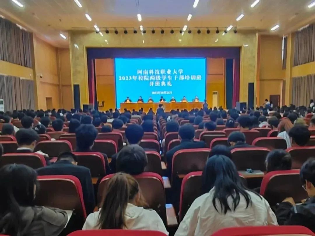 为深入学习贯彻习近平新时代中国特色社会主义思想和党的二十大精神,进一步加强学生干部队伍建设,全面提高学生干部的责任意识、大局意识、服务意识和创新意识,发挥好学生组织的桥梁纽带作用。经校团委研究,报校党委批准,10月24日下午,河南科技职业大学2023年校院两级学生干部培训班开班典礼于图书馆三楼报告厅顺利召开。