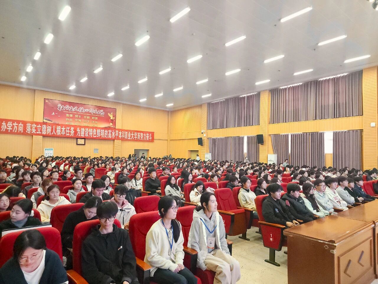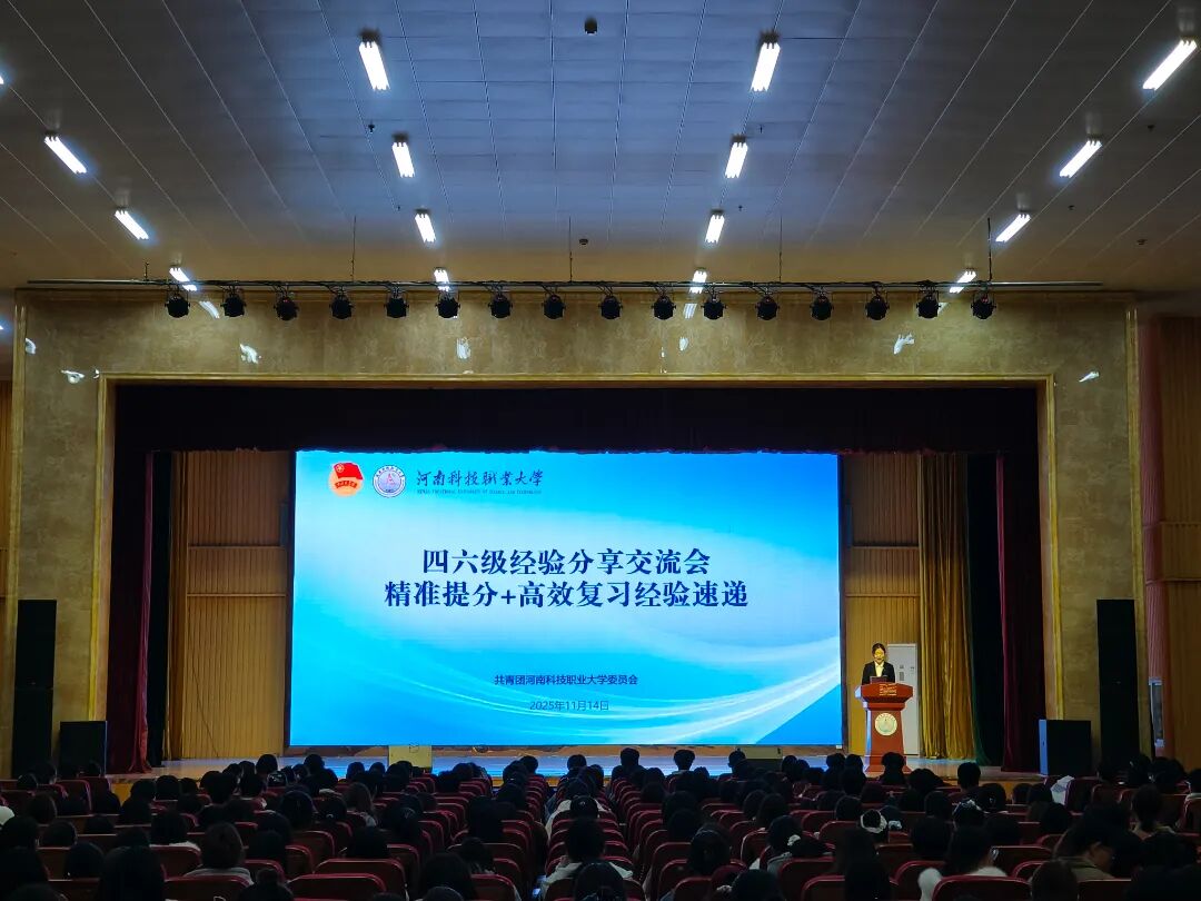 为助力学生高效备战英语四六级考试,提升英语应用能力与应试水平,11月14日下午由共青团河南科技职业大学委员会组织开展的“2025英语四六级交流分享会”在图书馆演播厅成功召开。