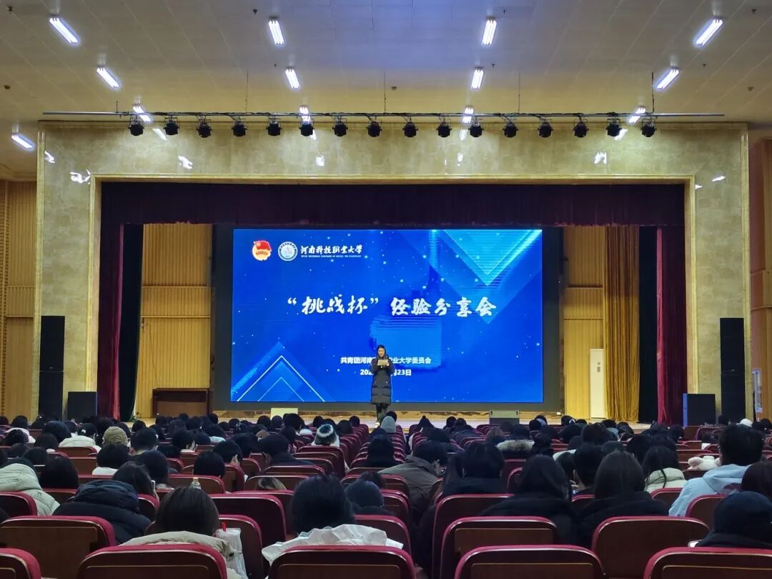为进一步营造校园科技创新氛围,全方位提升学生的科研创新能力,助力广大同学更加充分高效地备战“挑战杯”大学生课外学术科技作品竞赛。 2025年12月23日下午,由共青团河南科技职业大学委员会组织开展的“挑战杯”经验分享会在图书馆三楼演播厅成功召开。