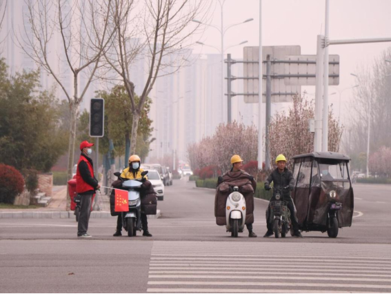 “希望大家都能自觉遵守交通法规,杜绝不文明行为,为安全出行贡献一份力量!执勤时天气寒冷,‘站岗’四个半小时,对我们的身体和耐力也是一种考验。”志愿服务队员慕子恒笑着说道。