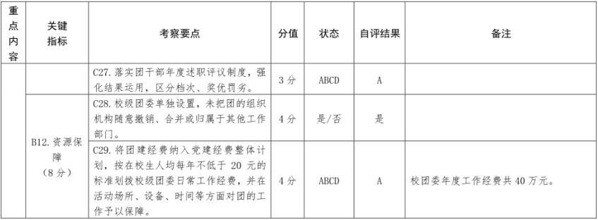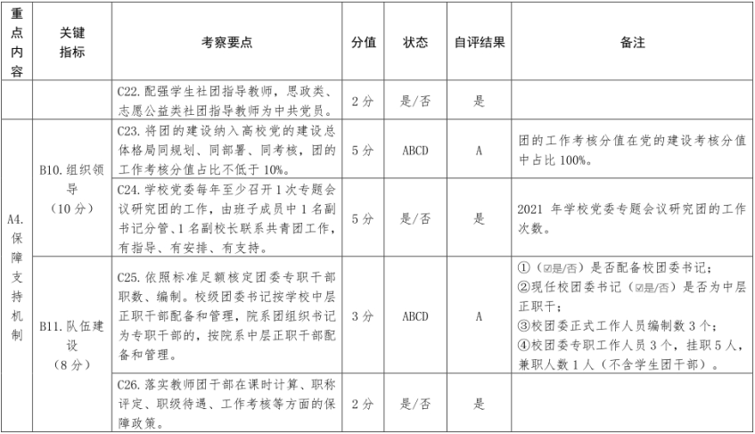 全校各级团组织已基本按照标准配足配强团的干部,所有教师团干部皆在各项权益和激励政策方面有文件、有标准、有保障。坚持开展团干部年度述职评议制度,做到专职团干部全覆盖,对评议结果明确档次,奖罚有度。