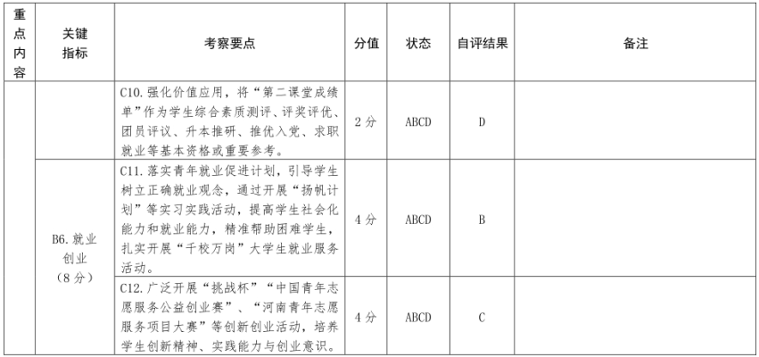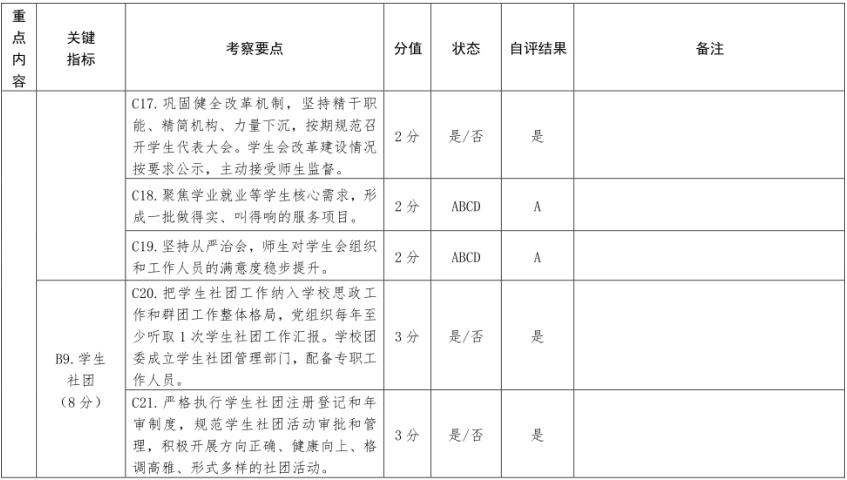 改革自评表