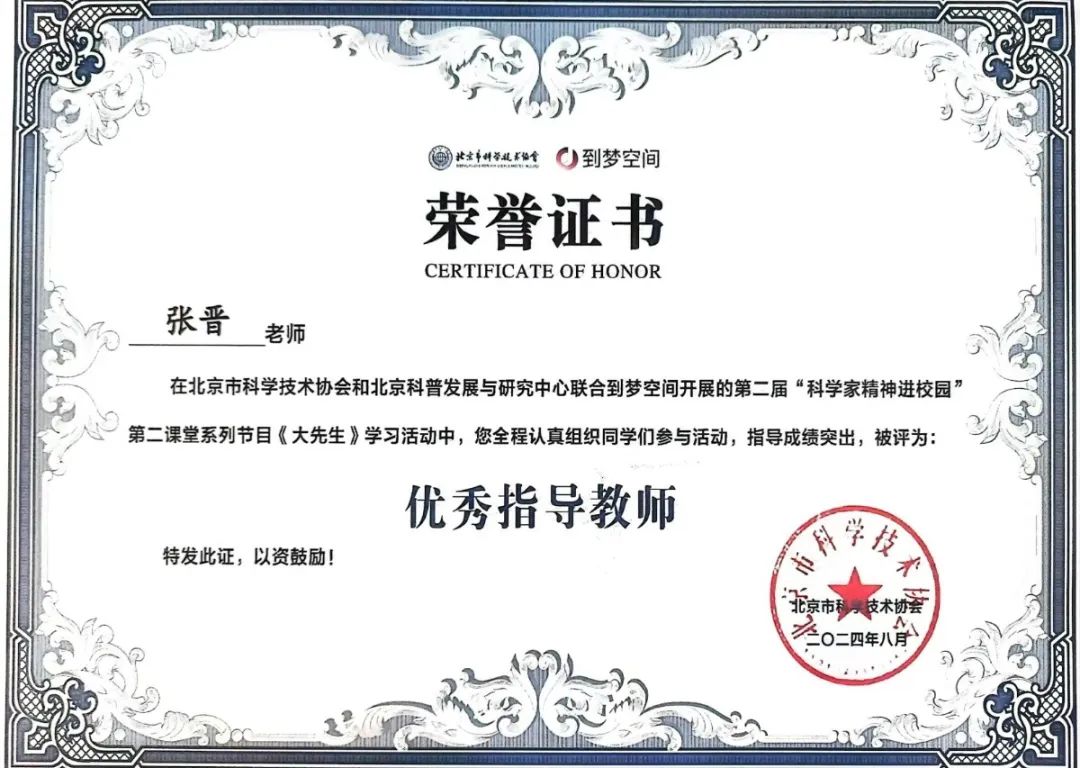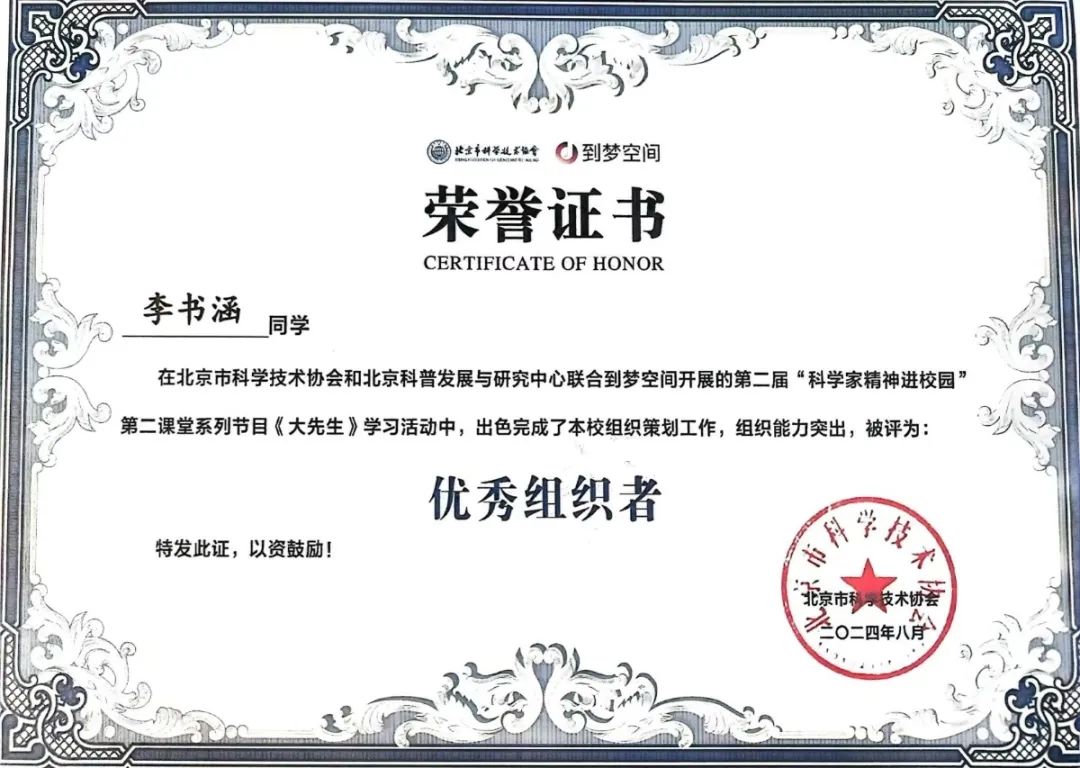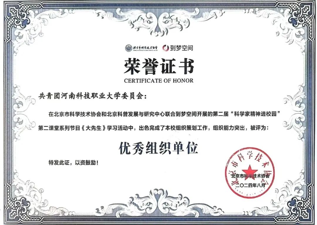 近日,由北京市科学技术协会和北京科普发展与研究中心联合到梦空间开展的第二届“科学家精神进校园”第二课堂系列节目《大先生》,走进高校第二课堂学习活动。在此次活动中,我校团委出色完成了组织策划工作,组织能力突出,被评为“优秀组织单位”。