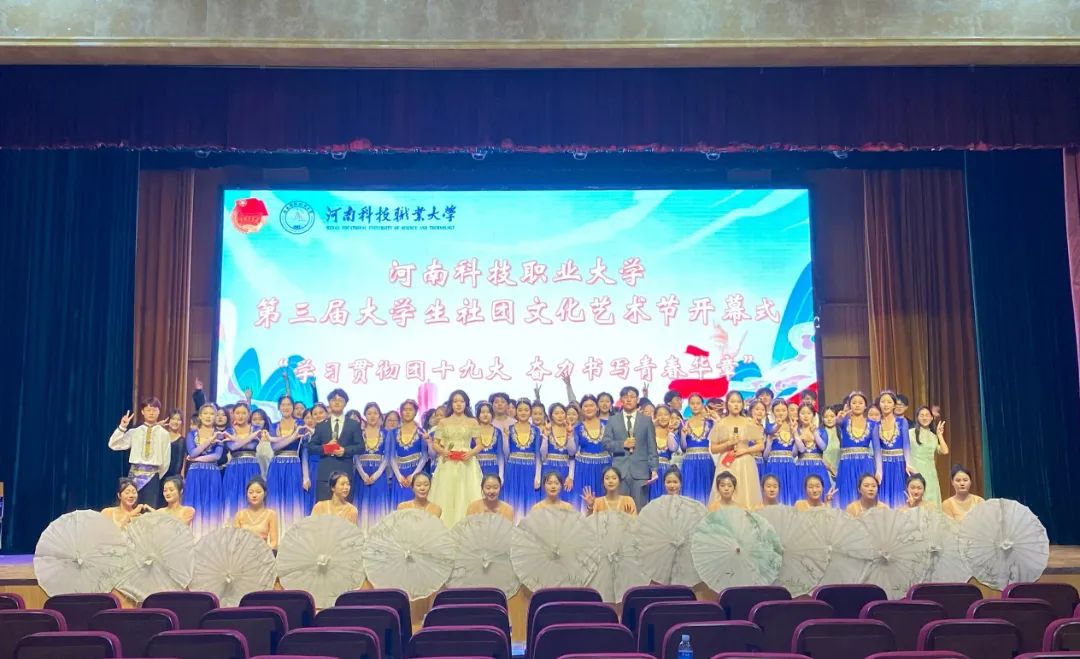 为深入学习宣传贯彻党的二十大精神、习近平总书记同团中央新一届领导班子成员集体谈话时的重要讲话精神,落实团十九大工作部署,围绕立德树人根本任务,充分发挥社团文化活动在培育和践行社会主义核心价值观中的重要作用,激发学生社团的积极性、创造力。9月21日晚,由中共河南科技职业大学委员会主办,共青团河南科技职业大学委员会、河南科技职业大学学生会承办的“学习贯彻团十九大,奋力书写青春华章”第三届大学生社团文化艺术节开幕式在图书馆三楼演播厅顺利举行。校党委副书记 夏永亮、学工部部长 尚德山出席本次活动,社团建设管理评议委员会委员、各学院团总支书记、学生社团指导老师参加本次活动。
