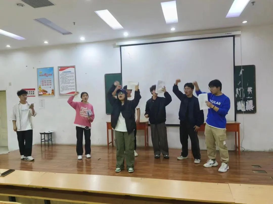 活动中,社长首先将剧本以及相关视频发至社团内,让社员清晰的了解剧本的内容和表演参考细节,激发社员对剧本的兴趣以及社内的团结力,然后选取角色的社员进行部分剧本的表演,由社长,副社长等人员讨论协商并根据社员的表演对角色进行筛选和调整,最后决定剧本的表演人员选定时间进行排练。