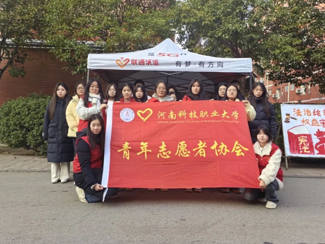 为了帮助同学们树立正确的价值观,营造良好的校园秩序。青年志愿者协会于2024年12月7日在河南科技职业大学第一餐厅西门举办了以“法治绘就青春色,权益守护校园行”为主题的志愿服务活动。