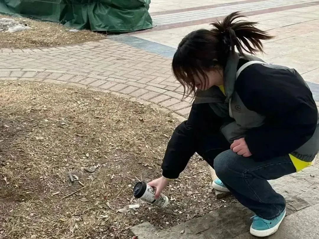 活动中,团队成员积极主动打扫地上的落叶,看到湖周围的烟头、塑料袋等垃圾会用垃圾夹捡起放入垃圾袋中,将其打扫干净。团队成员认真打扫、礼貌待人、呼吁大家了解认知乡村。