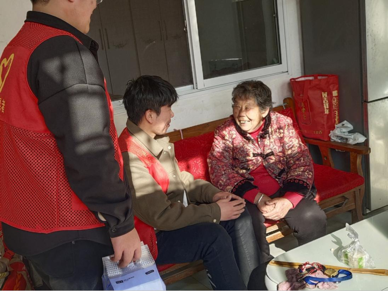 活动当天,团队成员通过村民委员会了解到村内居民情况,组织成员走访村内空巢老人,与老年人进行暖心沟通,同时为老人带来社区提供的公益物资,为老人送上温暖。