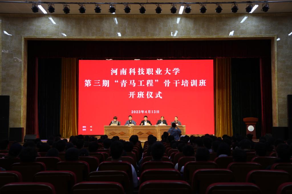 为深入贯彻落实党的二十大精神和团中央关于开展青年马克思主义者培养工程的相关文件精神,在广大青年中着力培养、造就一大批经由马克思主义中国化的最新成果武装、具有较高政治素养的年轻马克思主义者,提升我校青年团干的政治素养。4月13日下午,我校在图书馆三楼报告厅举行2023年河南科技职业大学第三期“青马工程”骨干培训班开班仪式暨开班第一课。