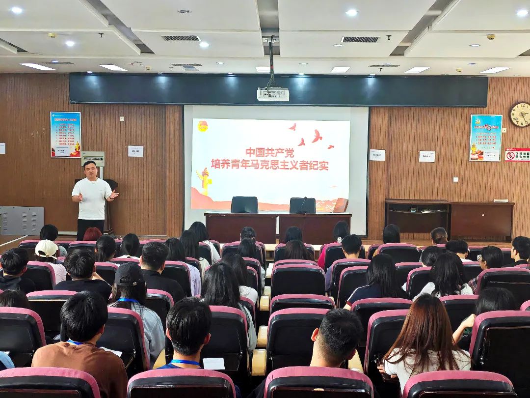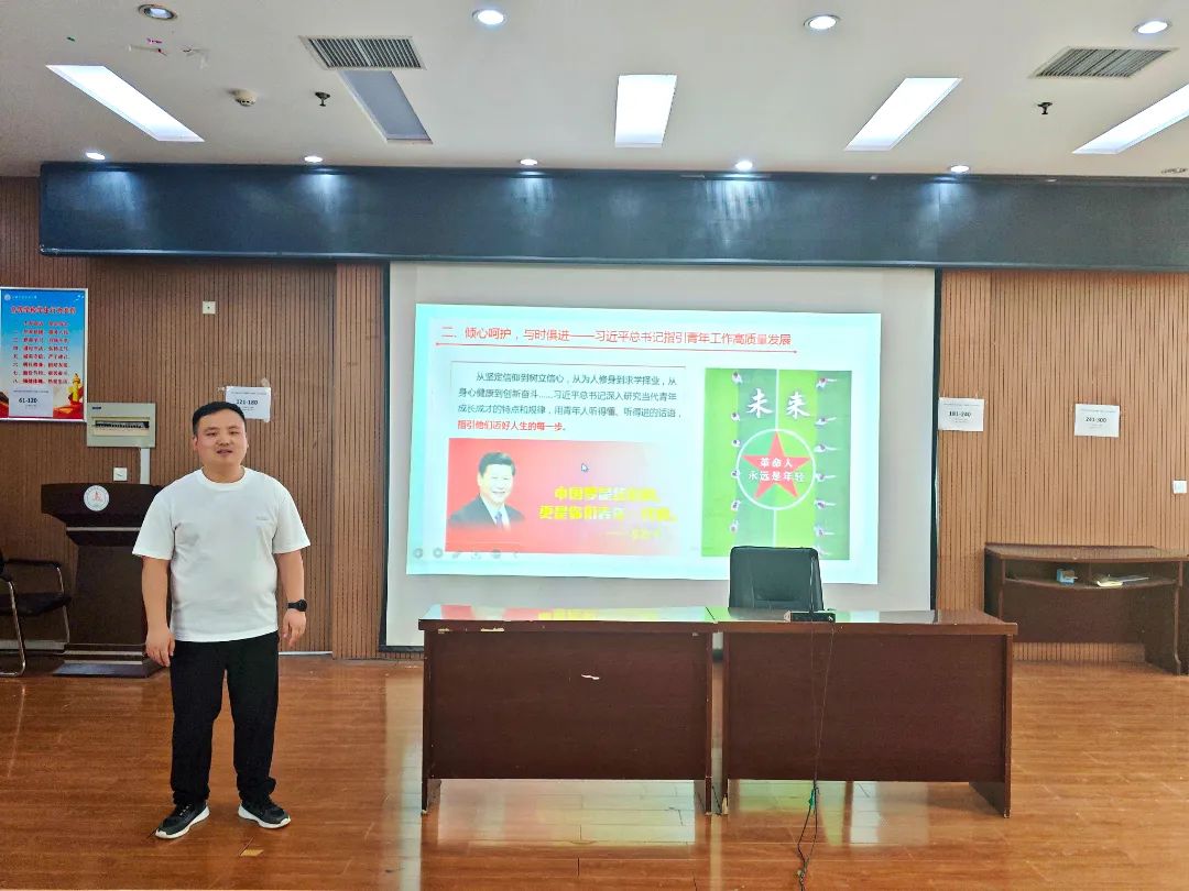 为深入学习贯彻习近平新时代中国特色社会主义思想,引导学员明晰自身作为青年骨干在新时代的责任与使命,增强对党的政治认同、思想认同、情感认同。2025年5月6日中午,河南科技职业大学“青马工程”骨干培训班开班第一课在综合楼西北一教室举行。校团委书记王亚雷为“青马工程”骨干培训班授课。