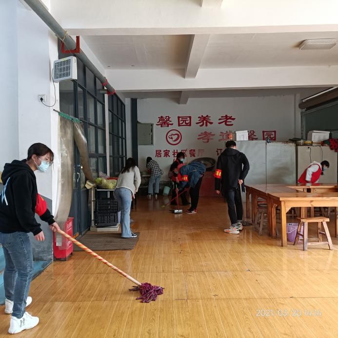 2021年3月20日中午,同学们来到我校月亮湾集合点名。随后根据负责人的安排,自行分组并交代注意事项,排队按照规定路线出发敬老院。敬老、助老活动正式展开,同学们分为若干个小组,各有分工。有的到各个楼层的房间,陪老人们拉拉家常、讲讲笑话、讲讲养生小知识,给老人们带去欢笑和快乐;有的帮助老人整理内务,打扫卫生,捶捶背,使老人变得轻松;有的到户外和老人聊天,听老人讲讲过去,讨论一下现在,不仅使老人摆脱的寂寞,也使自己受到了教育。
