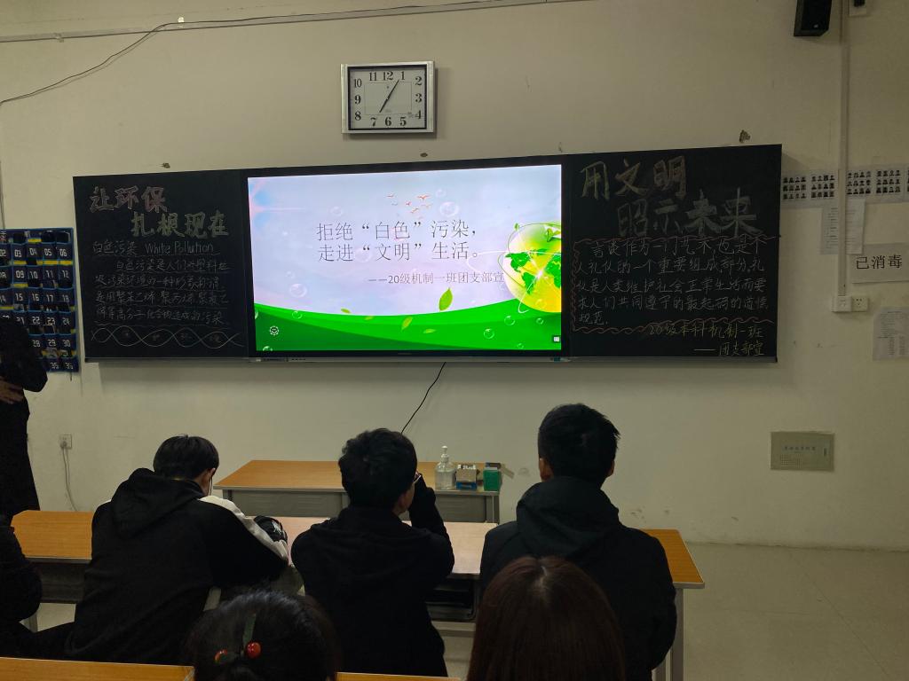 2021年,环境问题俞发严重。环境污染问题刻不容缓,我们必须早做预防。为了加强全院学生的环境保护意识,使得学生清楚保护环境的重要性,进一步营造爱世界,爱自然的和谐氛围,2021年3月19日晚我院开展以“拒绝白色污染,需从小事做起”主题班会。