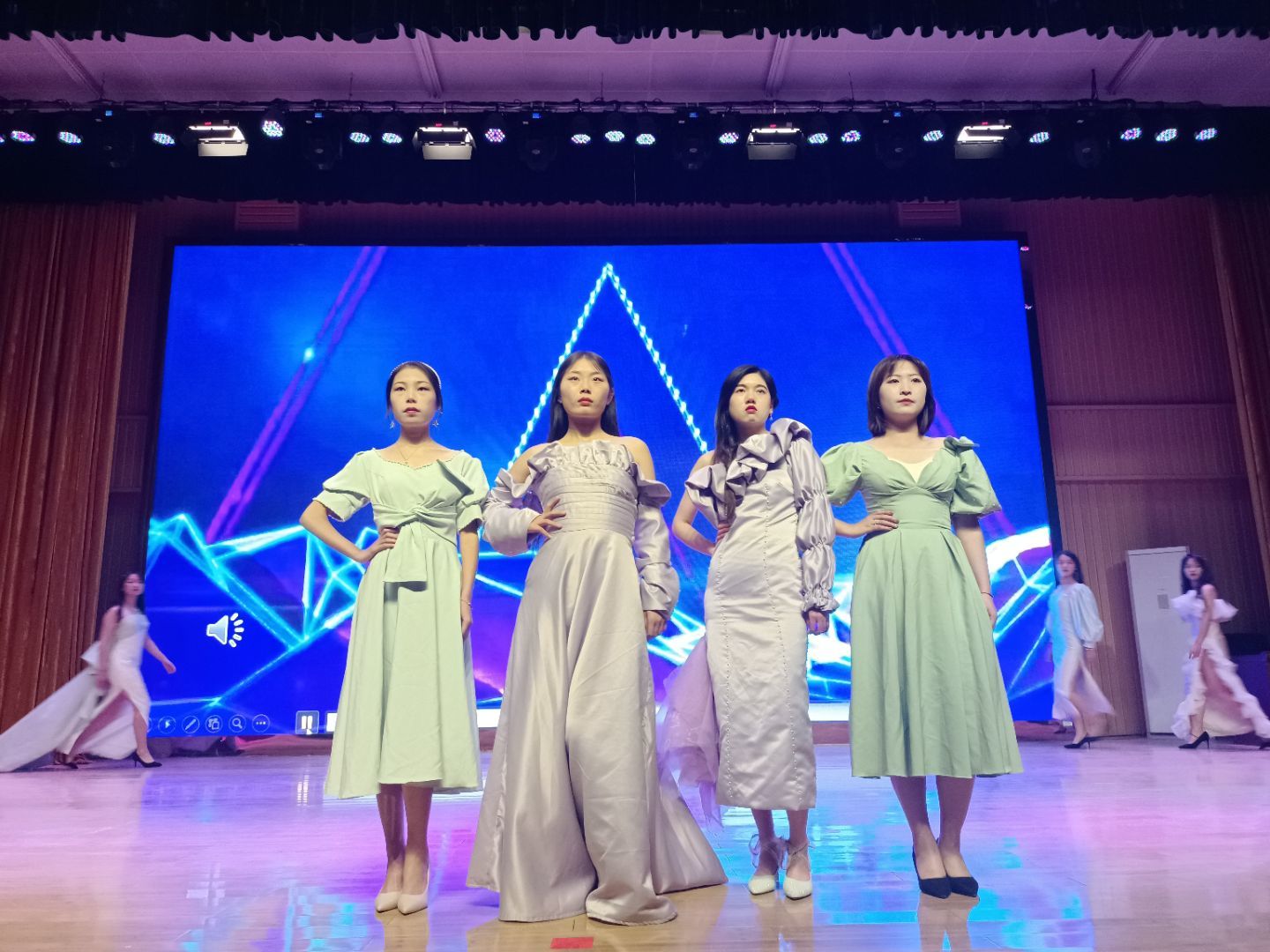 晚会的致辞,表达了老师对毕业生的美好祝愿以及对于在校生的殷切期望。晚会在学姐们自己组合排练带来的舞蹈中火爆开场,带动了场下观众的热情。接踵而至的是爵士舞蹈和毕业设计T台秀等节目,彰显了各自节目的艺术色彩。