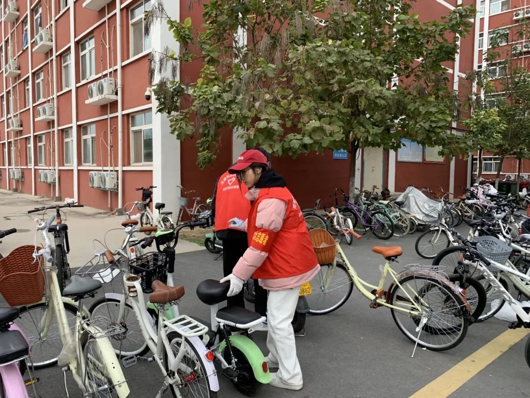 活动中,志愿者分成小组,分散至校园各处,将停放不当的车辆挪至规定的区域,排列整齐。遇到正在停车的同学,志愿者们提醒车主遵循校园停车规则,引导他们停放在规定的位置。