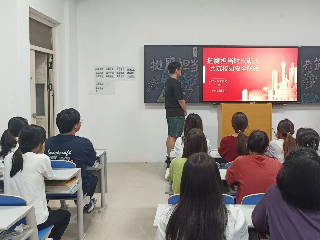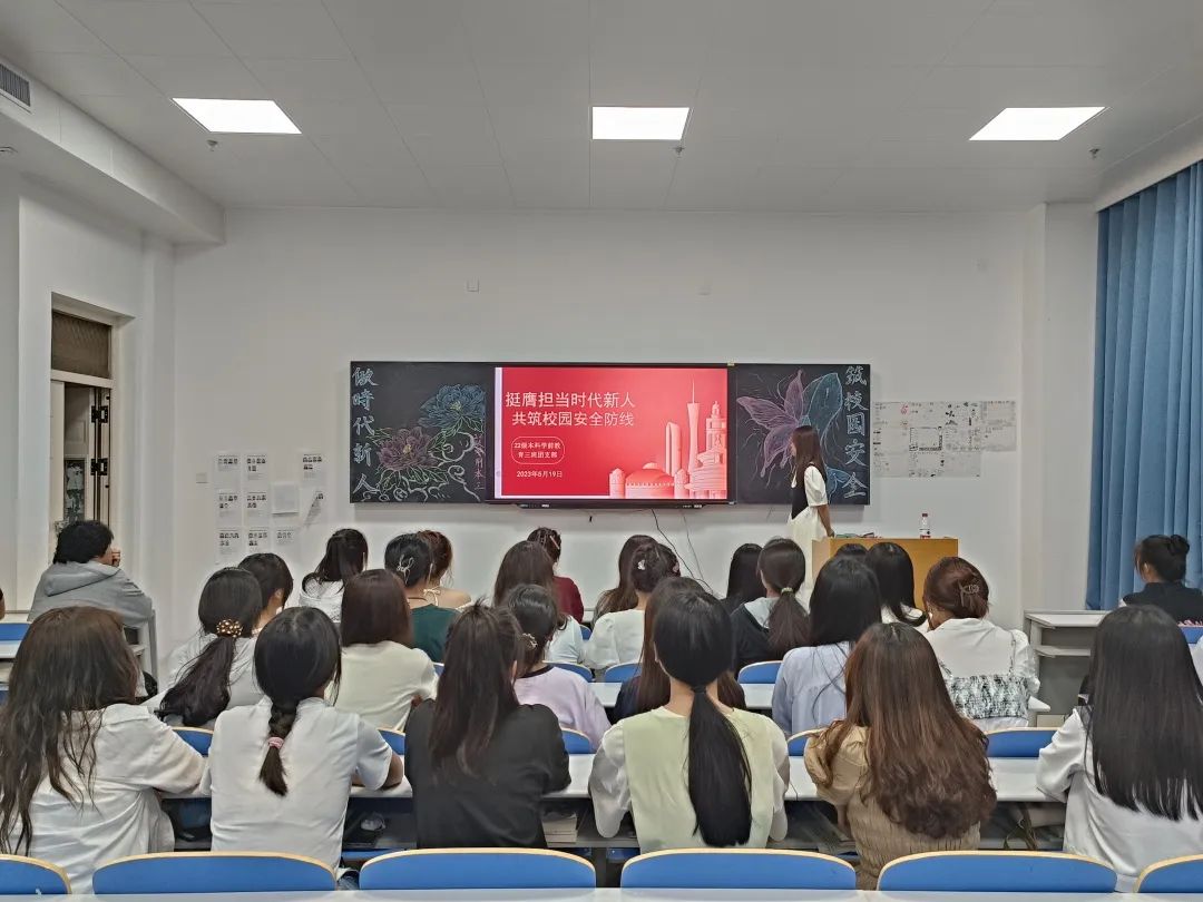 为深入贯彻落实党的二十大精神,认真学习贯彻习近平总书记关于全面加强国家安全教育的重要指示精神,进一步强化校园安全教育,增强学生的安全意识和自我防范意识。5月19日晚,共青团河南科技职业大学委员会特组织各学院开展以“挺膺担当时代新人,共筑校园安全防线”为主题的思政班会。