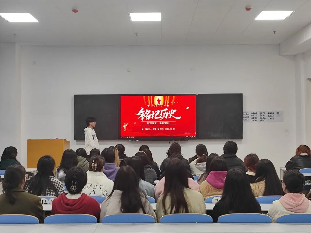 思政班会上,各班团支书通过展示与抗日战争相关的图片或播放相关视频,使学生深入了解一二·九运动的历史背景和意义以及抗日精神,积极号召学生要牢记历史、珍惜现在,激发学生的爱国之情和报国之志。同时,还带领学生讲述革命先烈故事,祭奠先烈,教育引导学生慎终追远、缅怀先辈,激励学生弘扬爱国主义精神,珍爱和平,以史为鉴。