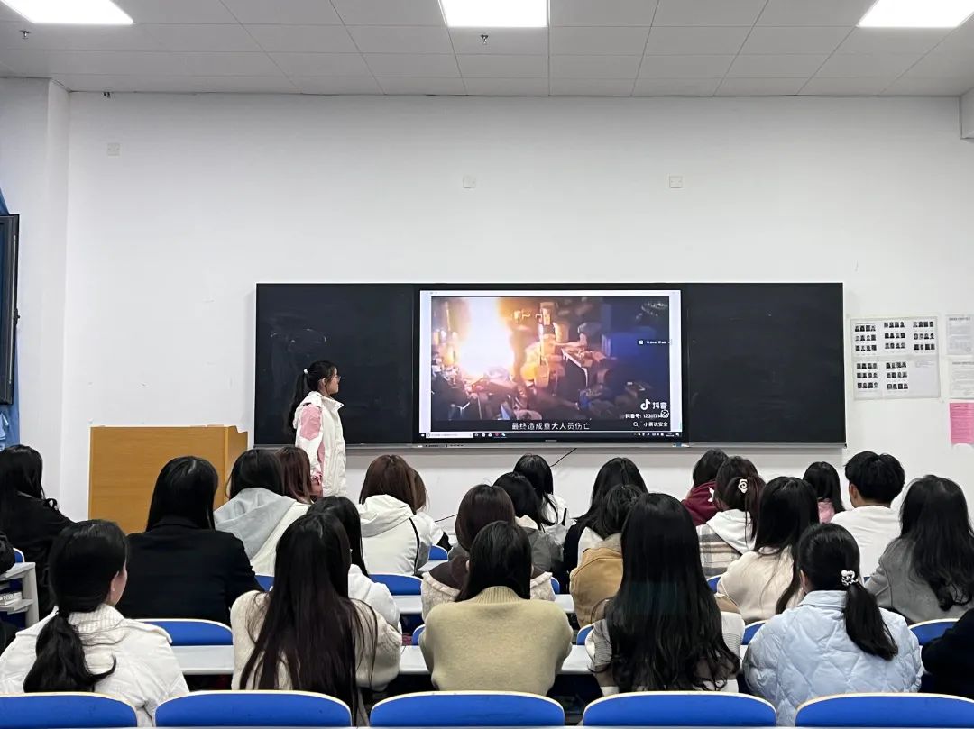班会上,各班团支书通过展示PPT的形式向同学们详细说明消防安全的重要性,引导学生积极学习消防安全知识。同时,团支书组织学生以上台演讲的方式,说明在学校里使用大功率电器和易燃物等造成的危害,组织学生参加消防知识问答互动,促使学生规范自身行为,让同学熟知有关消防安全的知识。