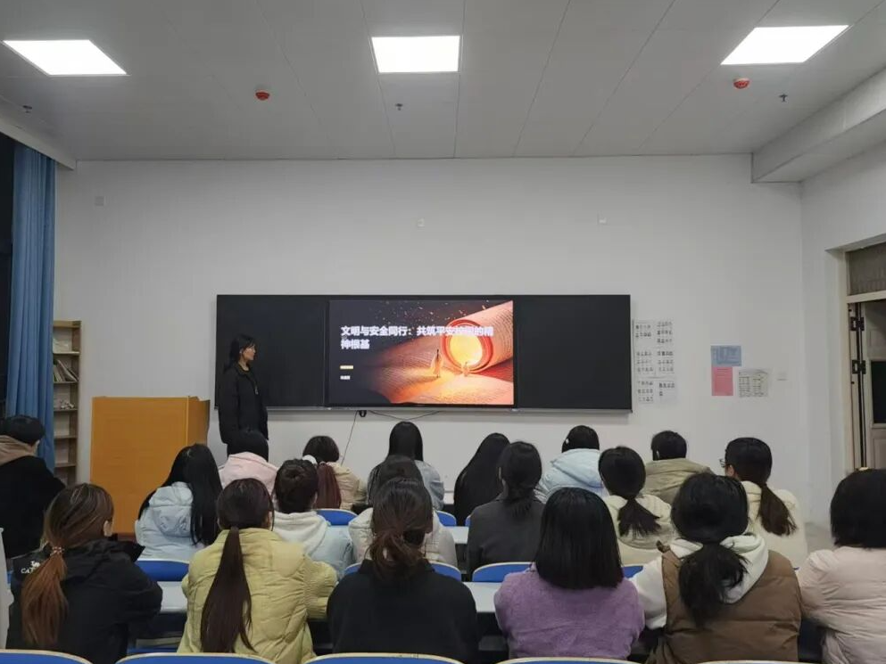 书香与文明齐飞,青春与梦想同行。为全面推进文明校园建设工作,切实筑牢校园安全防线,引导学生自觉树立规则意识。2025年11月21日晚,共青团河南科技职业大学委员会特组织各学院开展“厚植文明底蕴,共建平安校园”主题班会。