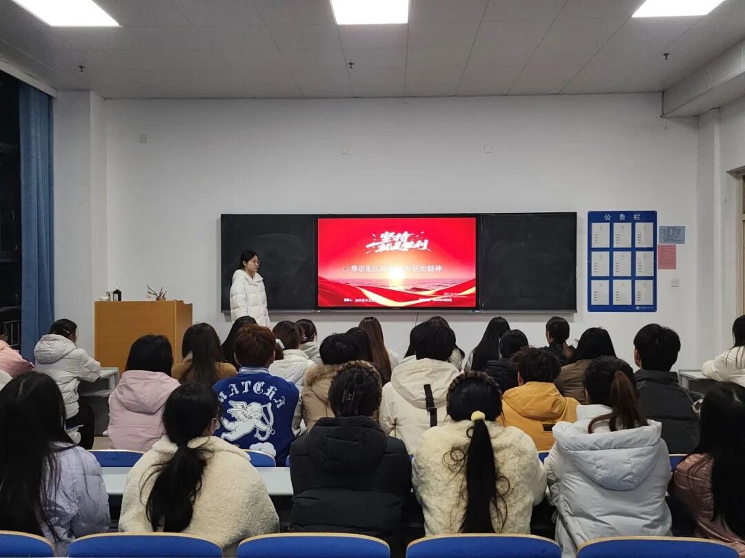 2025年12月4日是第十二个国家宪法日,为深入贯彻落实习近平法治思想,增强学生的宪法意识、引导学生自觉养成尊法学法守法用法的习惯,树立“宪法至上、法律面前人人平等”的法治观念。2025年12月5日晚,共青团河南科技职业大学委员会特组织各学院开展“尊崇宪法权威,践行法治精神”主题班会。