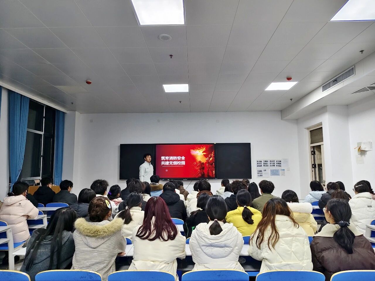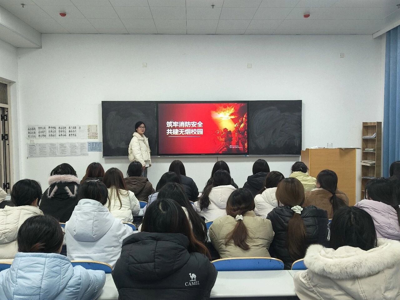 最后,各班组织“消防+禁烟”知识抢答、情景模拟演练,邀请学生分享身边的安全隐患案例,鼓励学生主动担任“校园安全监督员”,及时劝阻吸烟行为、排查消防隐患,营造人人参与、人人负责的安全健康氛围。